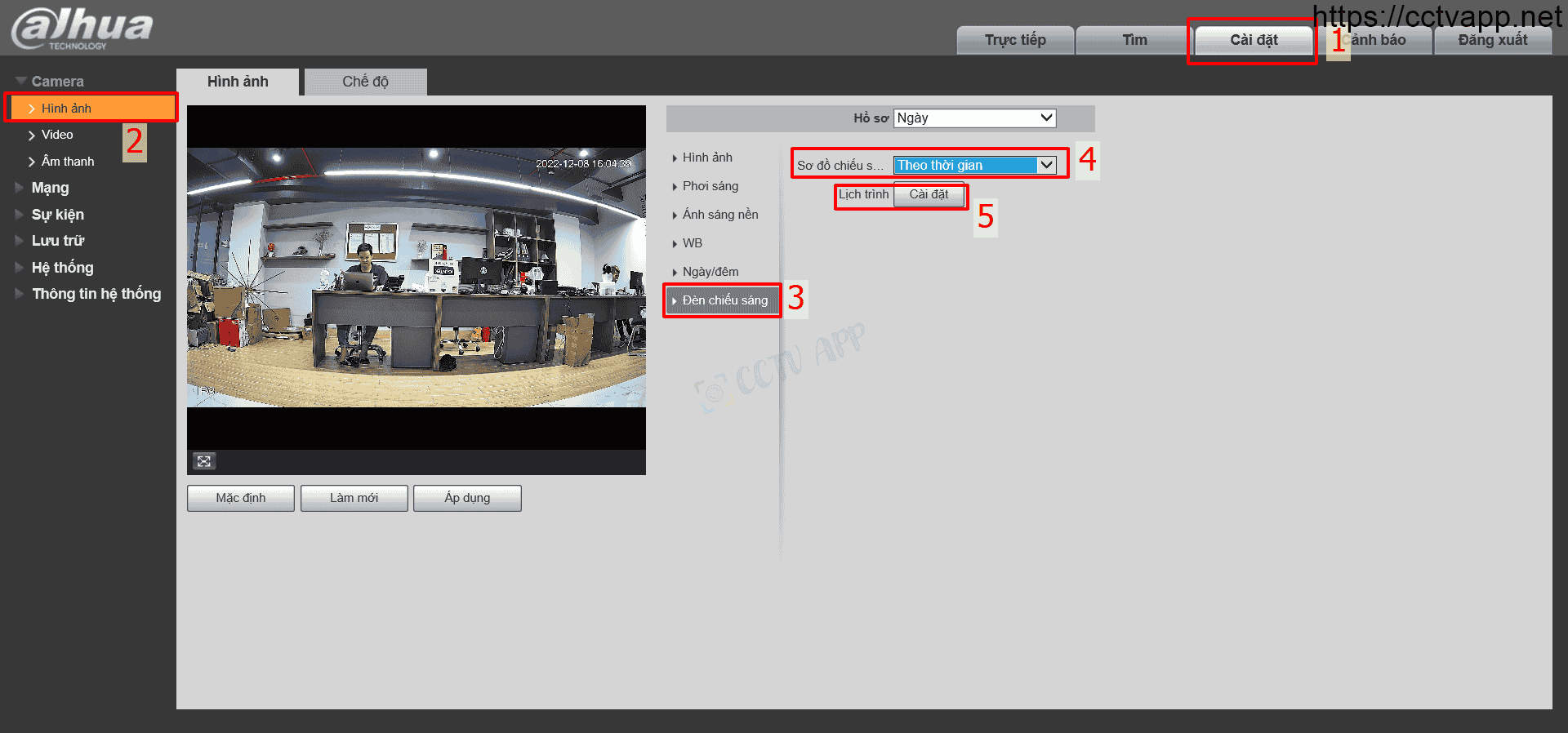 - Khi Camera thiếu ánh sáng (môi trường tối), tương ứng trong khung giờ thiết lập sẽ bật đèn tương ứng.