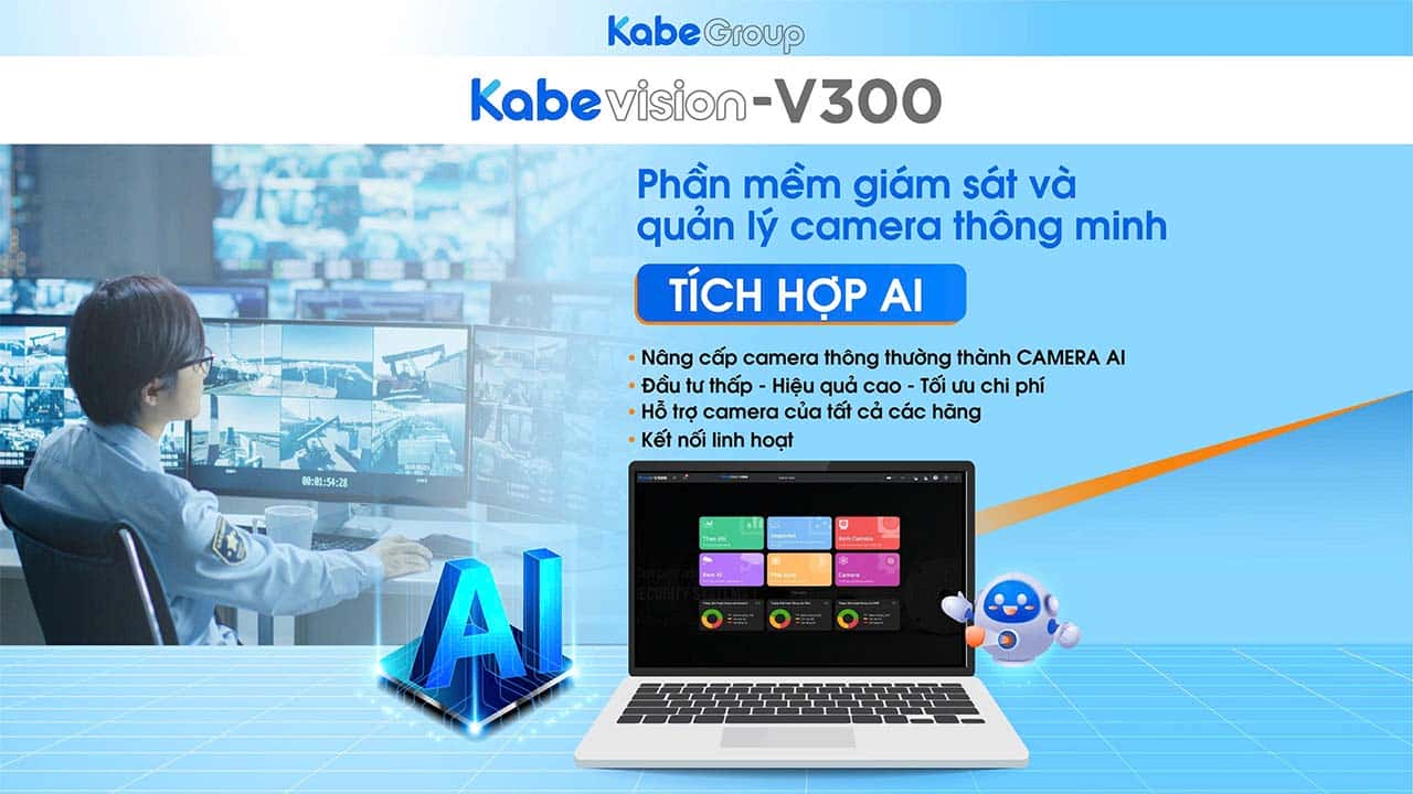 Vào đầu tháng 6/2025 năm nay, KabeGroup vừa ra mắt giới thiệu phần mềm Kabe vision – V300. Đây là phần mình tích hợp, giám sát và quản lý Camera thông minh. với nhiều tính năng nổi bật như:
